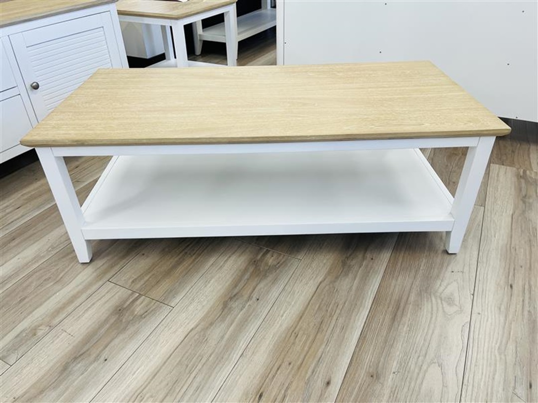 Enhance your living room with the Elegant Natural & White Coffee Table. This sophisticated piece combines natural timber with a white finish, creating a stylish and functional centerpiece for any seating area.
