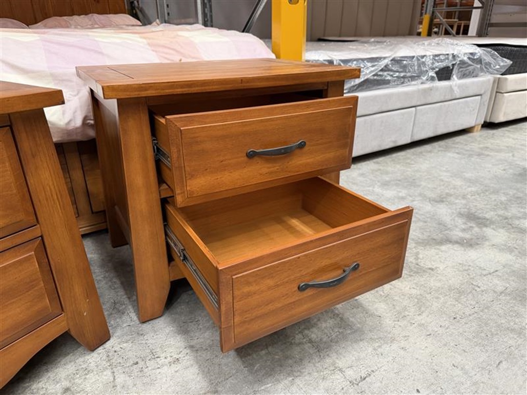 Teak Timber 2 Drawer Bedside with Metal Handles